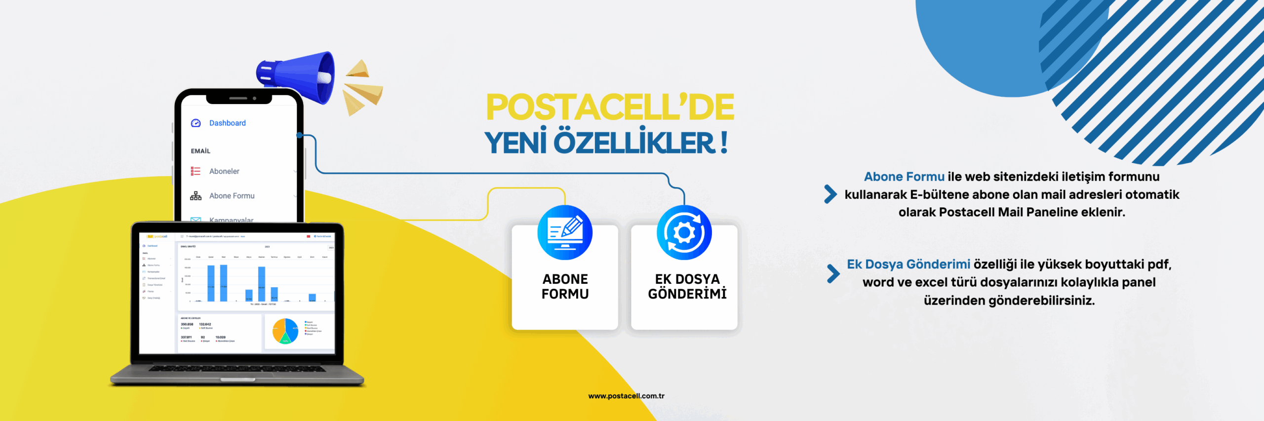 Postacell, işletmenizin hedef kitlesiyle dijital ortamda profesyonel bir iletişim kurmasını sağlayan bir teknoloji platformudur. Başta Toplu E-posta ve Toplu SMS gönderimi olmak üzere, Transactional Mail (işlemsel e-postalar), API entegrasyonları ve gelişmiş otomasyon çözümleri sunarız. Amacımız, pazarlama kampanyalarınızı ve müşteri bildirimlerinizi kolay, ölçülebilir ve verimli bir şekilde yönetmenizi sağlamaktır.